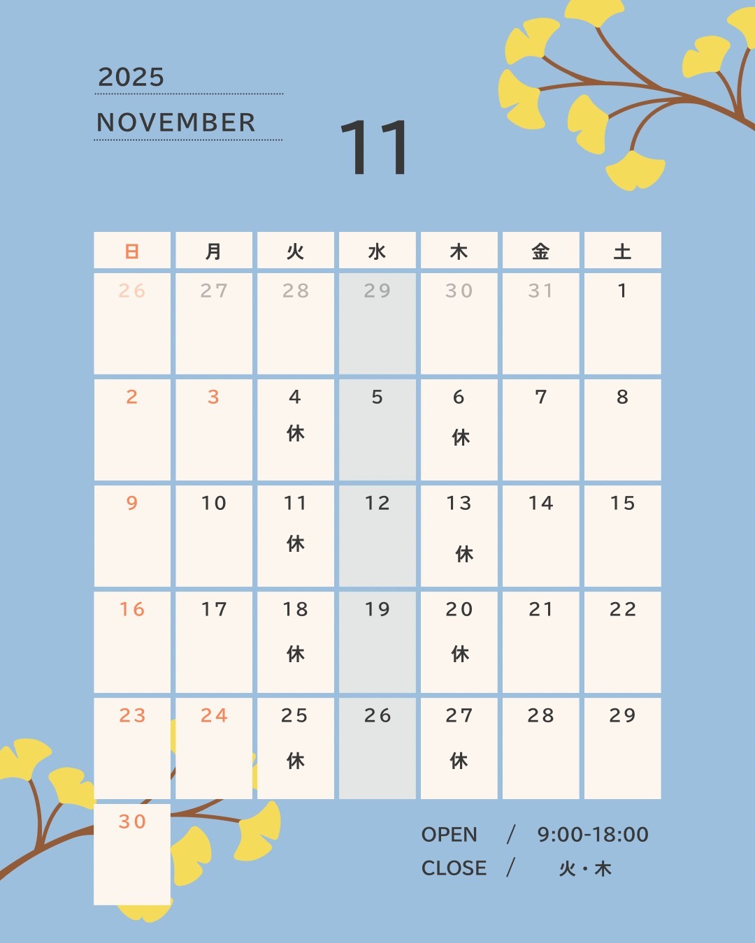 火・木 | 定休日 |